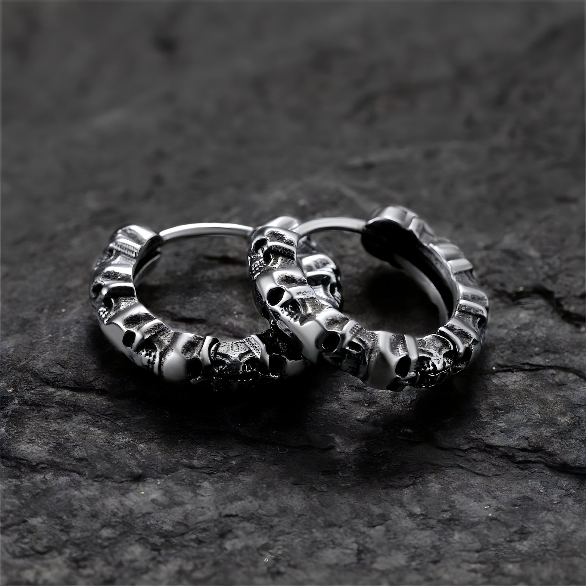 La mort n'a jamais été aussi belle. Une rangée de crânes parfaitement sculptés s'enroule autour de votre oreille, dégageant une sérieuse énergie 'ne me cherchez pas'.