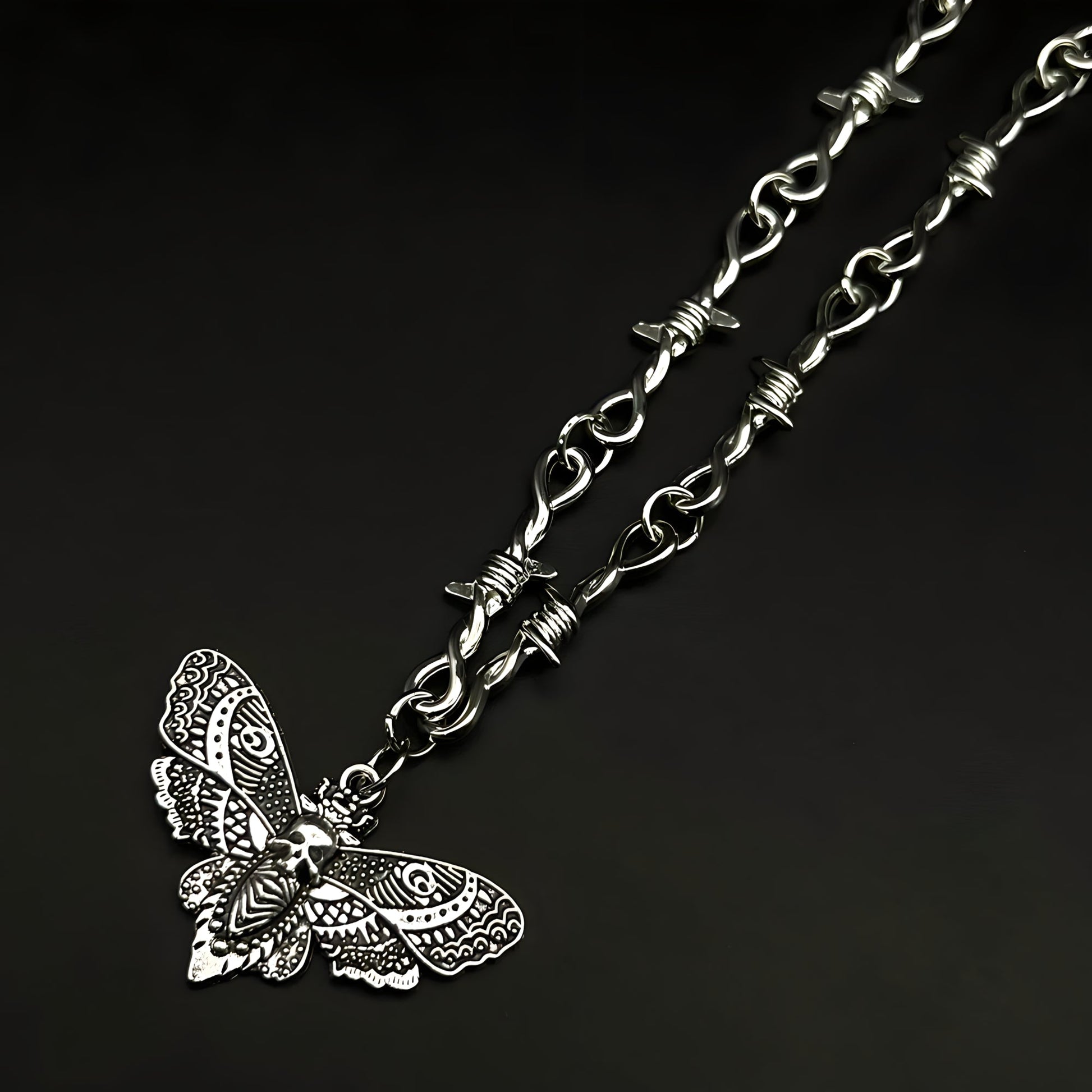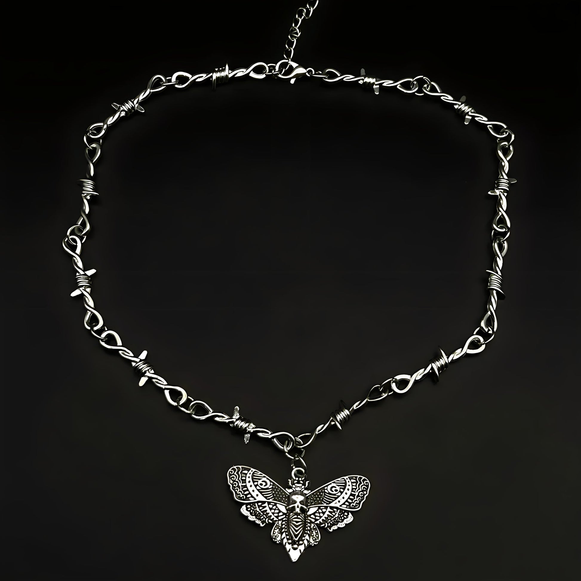 Joli ? Non. Brutal ? Toujours. Le Collier Papillon de Mort déborde de détails gothiques et d'énergie marginale. Pour ceux qui embrassent l'obscurité au lieu de la fuir.