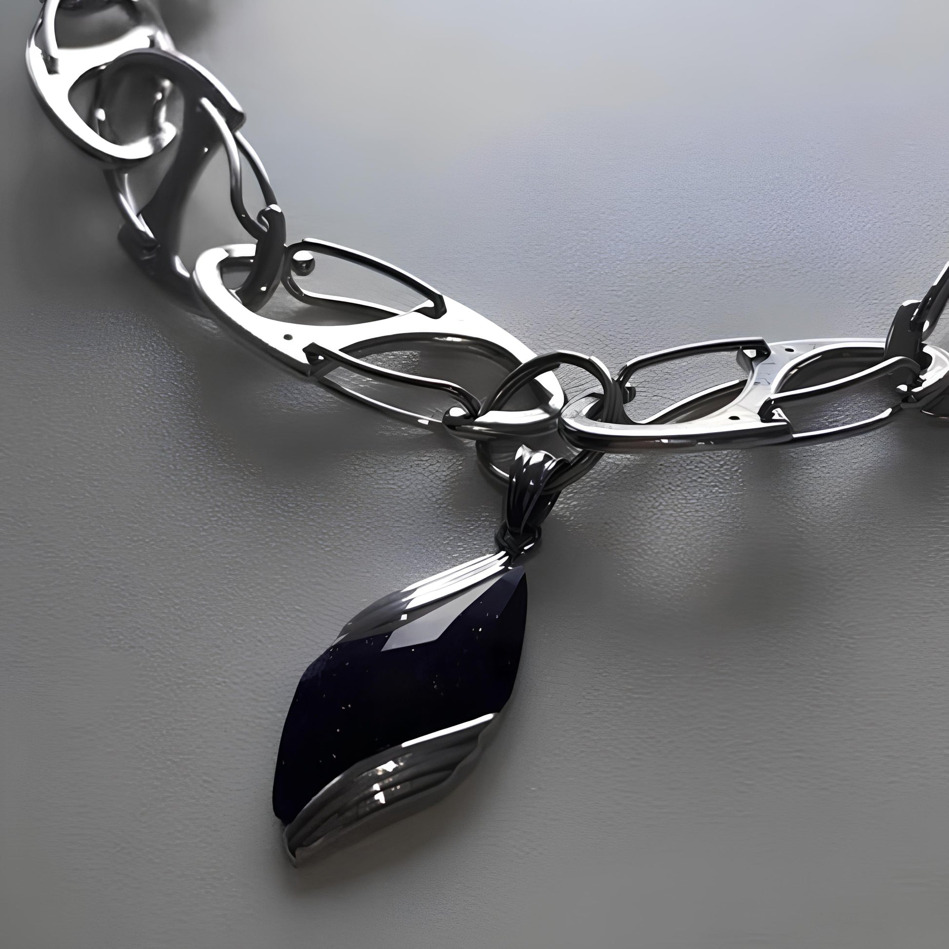 Vous ne suivez pas les tendances—vous les brisez. Avec une pierre noire dentelée suspendue à des maillons agressifs en forme de flamme, ce collier est un cri de guerre pour les sans excuses.